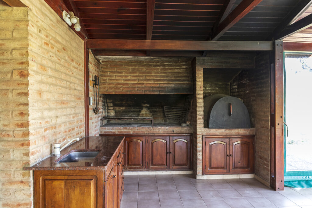 Asador y horno de barro para disfrutar de los mejores encuentros. Cuenta con mesa, sillas y vajilla completa.